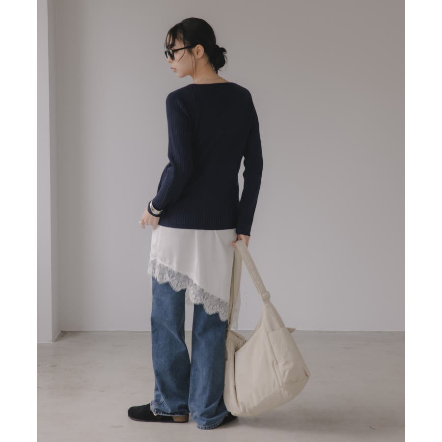 少しゆったり目なサイズ感で窮屈感がながら、リブ編みなので、華奢見えします◎