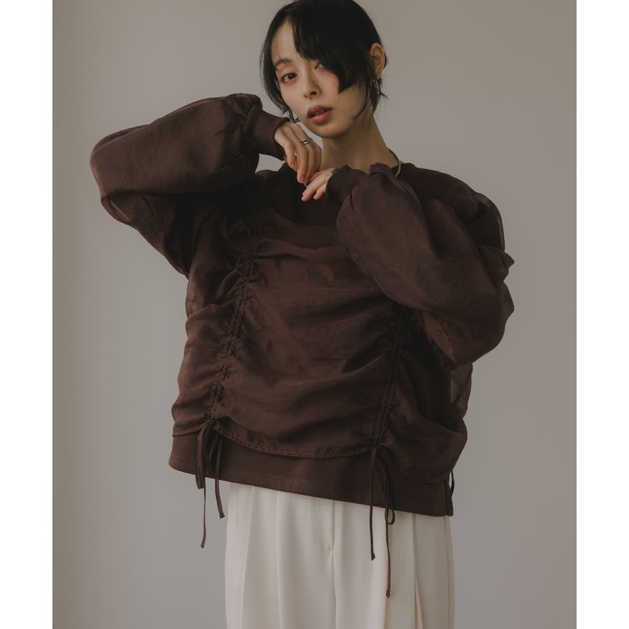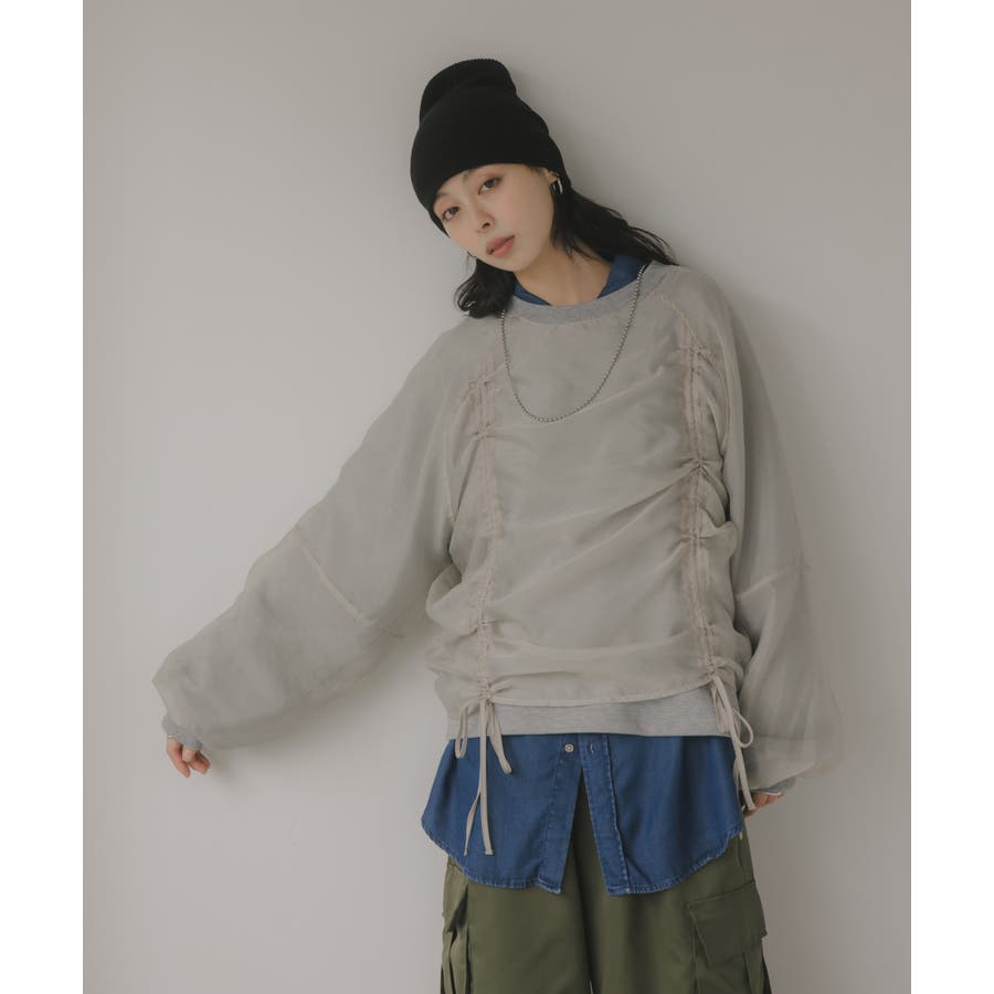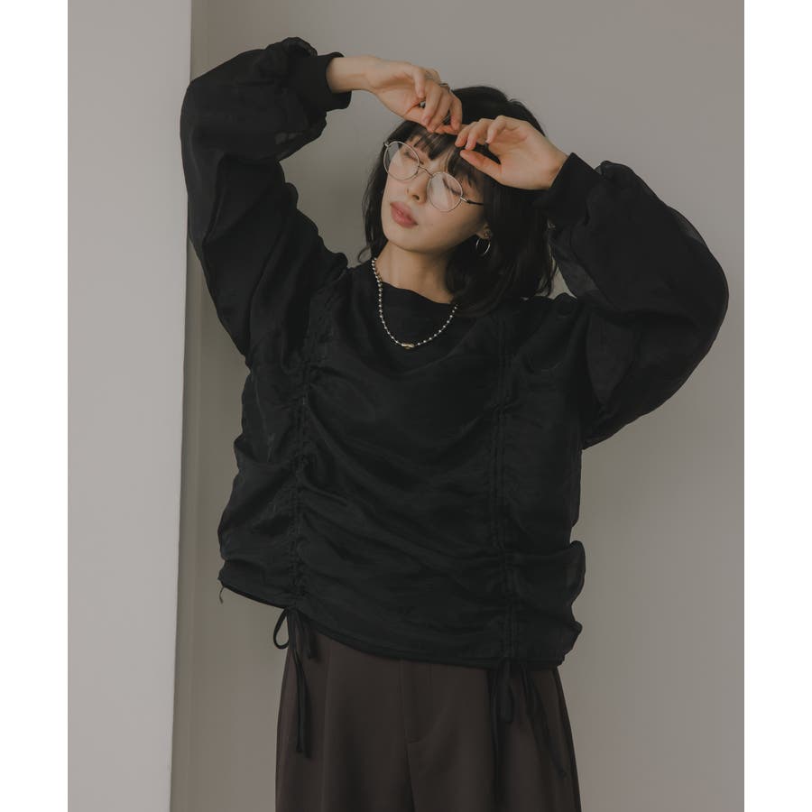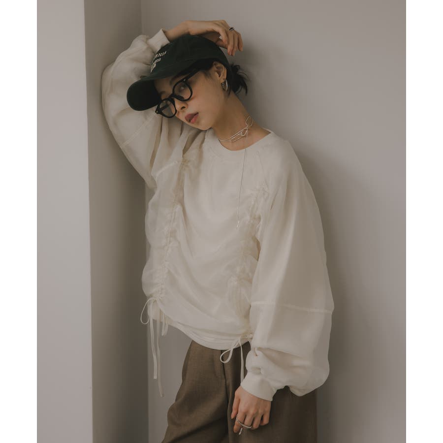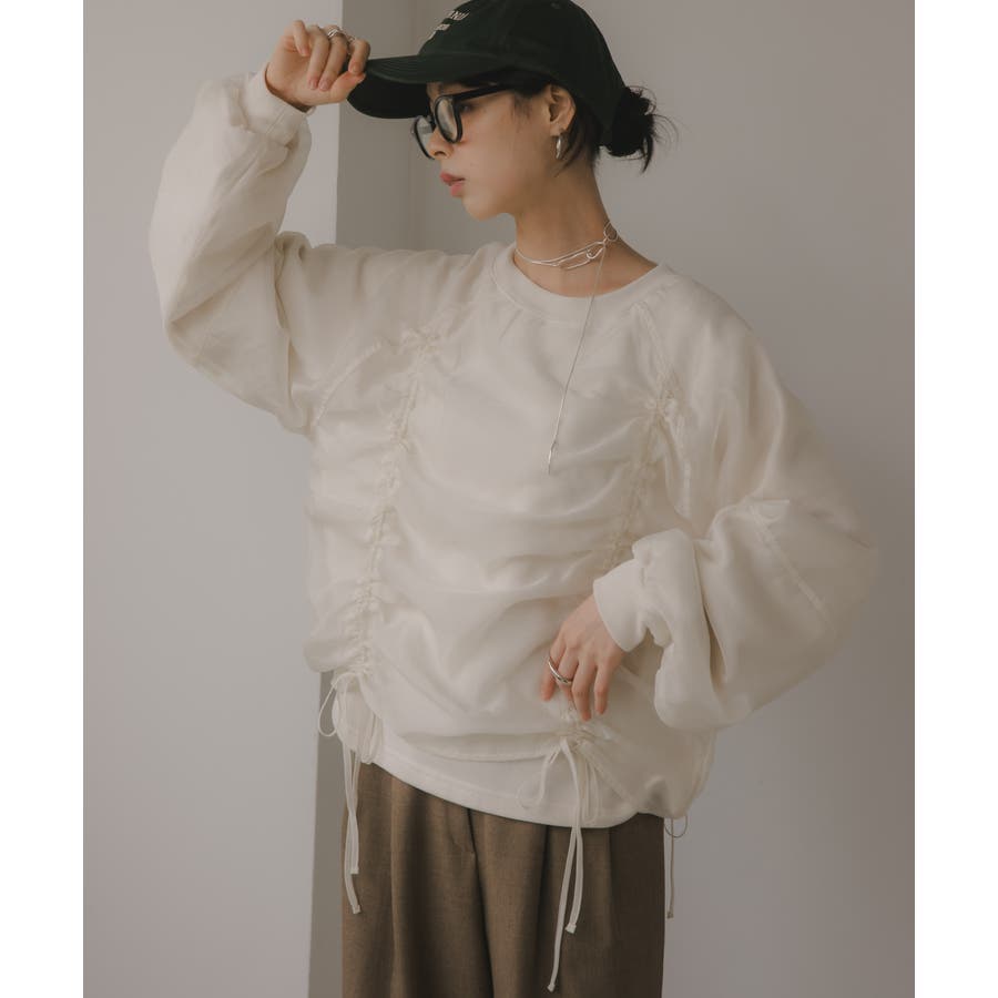 【透け感のあるオーガンジーで華やぎをプラスしたクシュクシュ感が可愛いドロストプルオーバー】