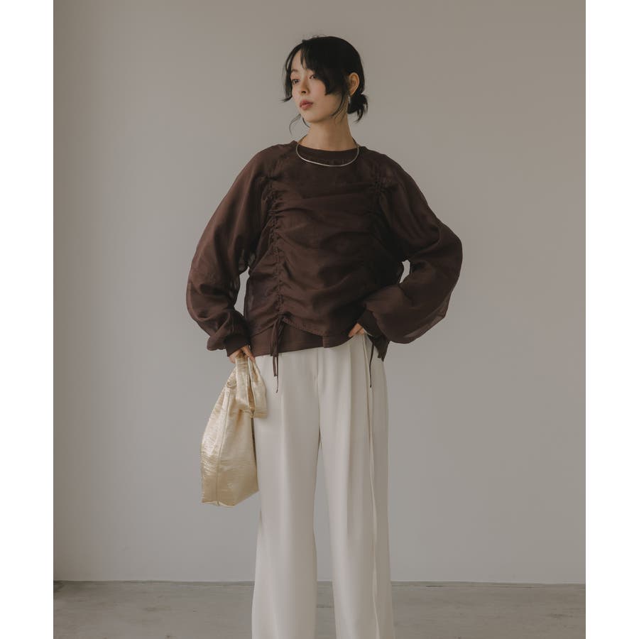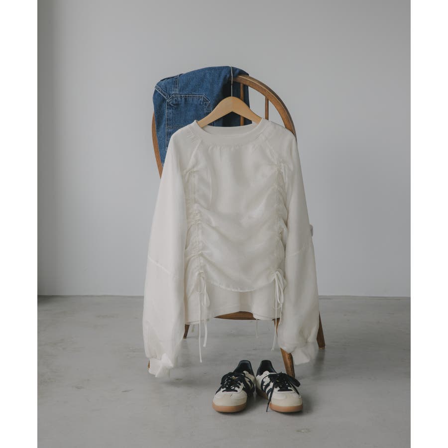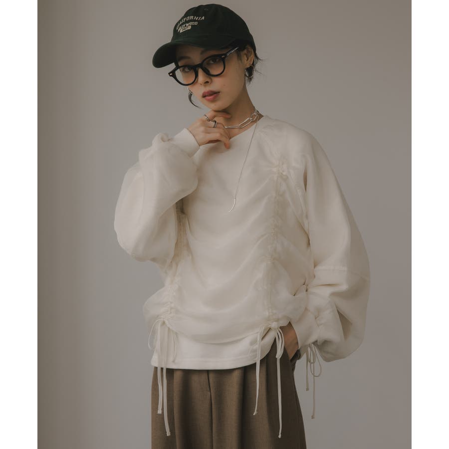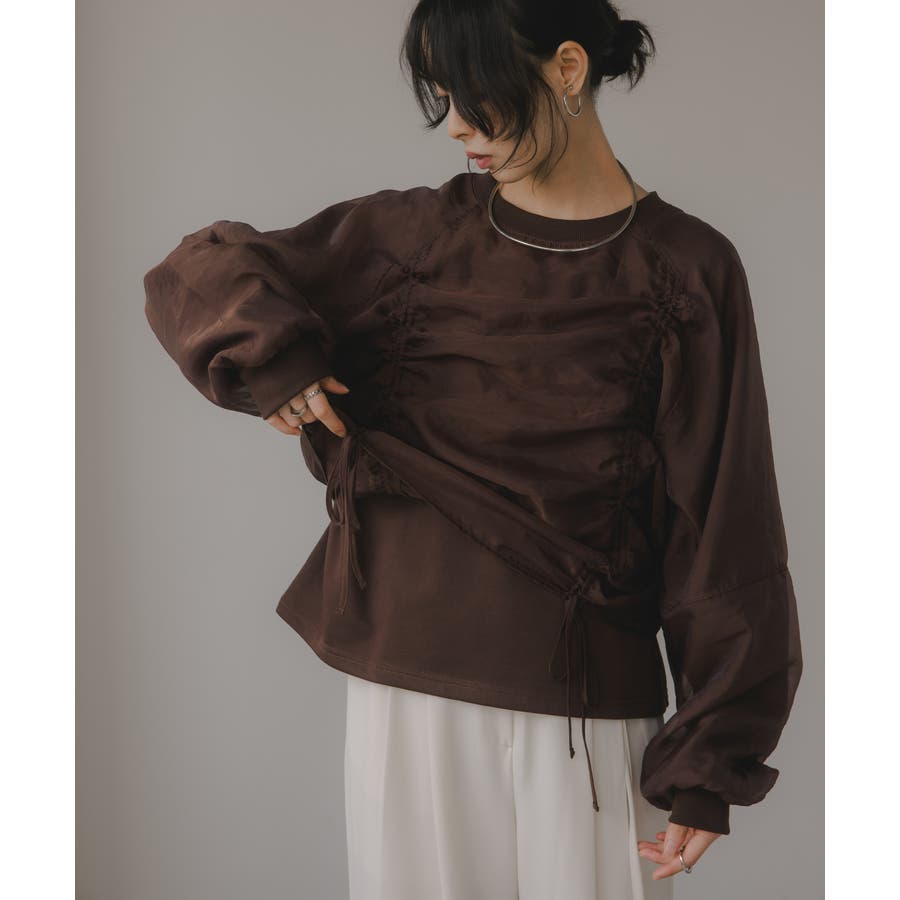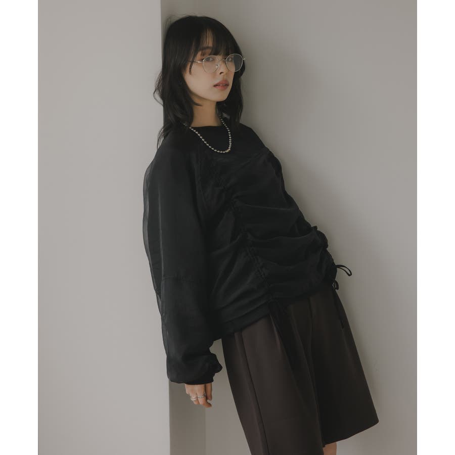 【透け感のあるオーガンジーで華やぎをプラスしたクシュクシュ感が可愛いドロストプルオーバー】