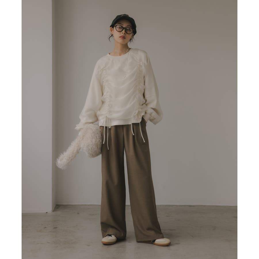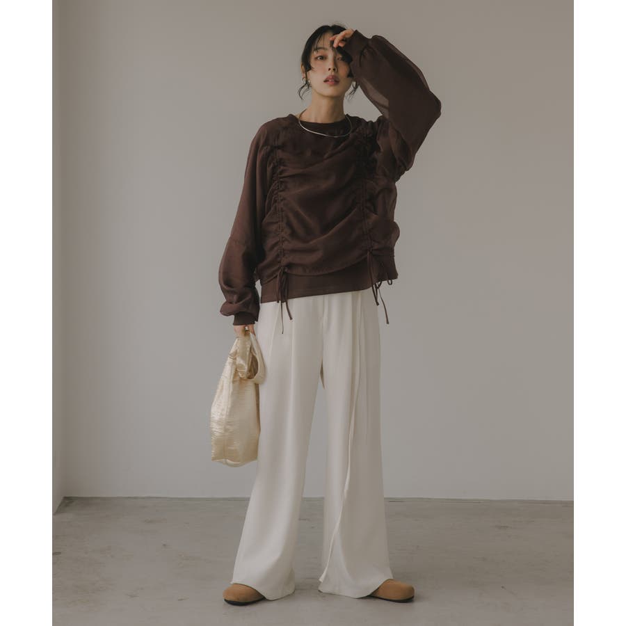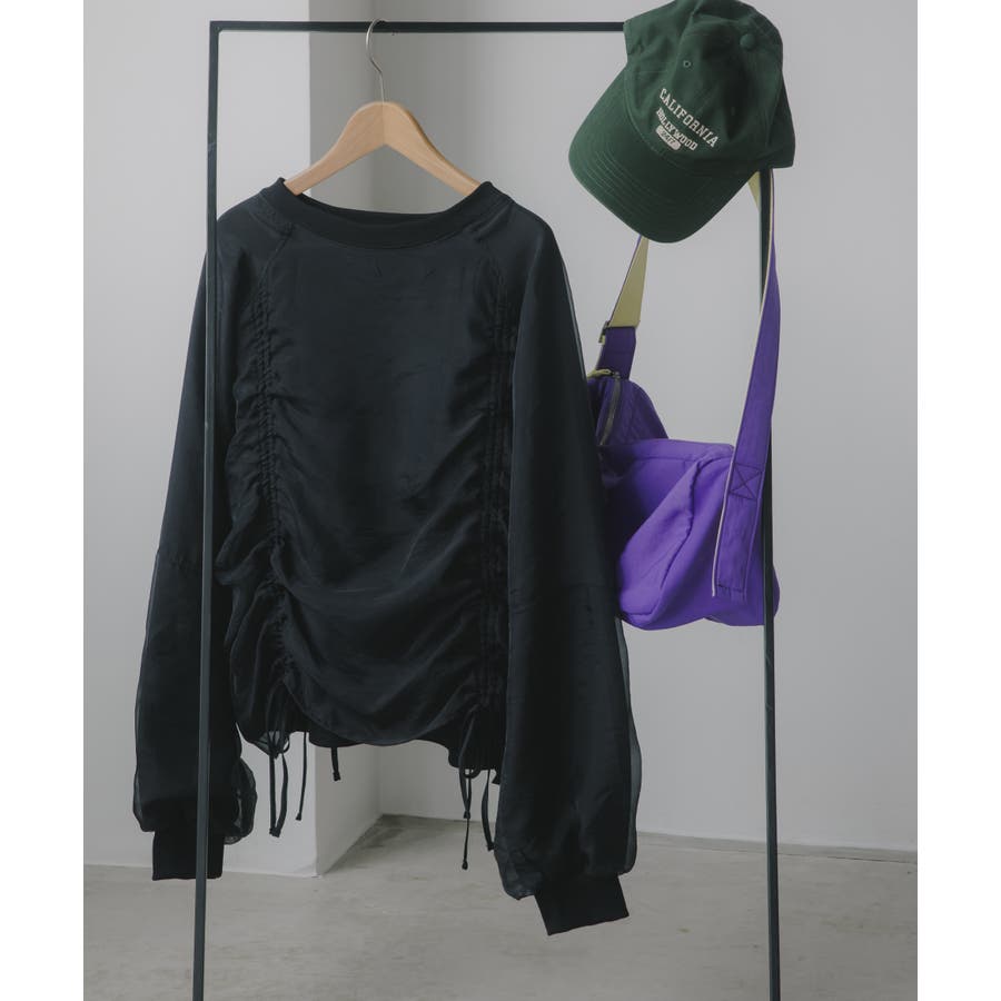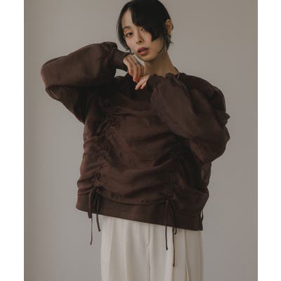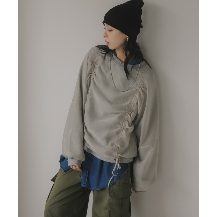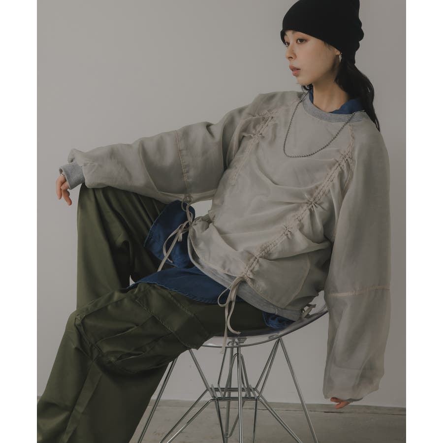 【透け感のあるオーガンジーで華やぎをプラスしたクシュクシュ感が可愛いドロストプルオーバー】
