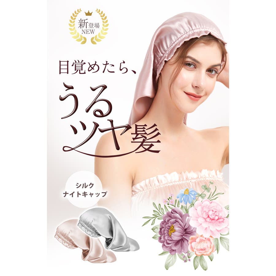 | 素材 | 本商品は、就寝時のヘアケアを目的として設計されたナイトキャップです。 身生地にはシルクのようななめらかさを意識した合成繊維素材を使用し、髪や頭皮に触れたときの質感に配慮した仕上がりとなっています。表面はつるりとした風合いで、髪との摩擦を意識しにくい素材感です。 キャップ部分はゆったりとした立体構造で、ロングヘアもまとめやすい設計。後ろ側はリボンで結ぶ仕様になっており、頭囲に合わせてフィット感を調整しやすく、ずれにくさを考慮した構造です。 軽量で通気性にも配慮した素材のため、就寝時だけでなく、リラックスタイムやヘアケア時間にも取り入れやすいアイテムです。 |