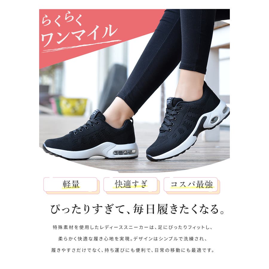 | 素材 | 素材:ニットメッシュ(アッパー) ソール:EVA+ラバー クッション:エアクッション構造 重量:軽量設計 通気性:メッシュ構造で蒸れにくい 履き口:柔らかフィット タイプ:レースアップ(紐タイプ) ヒール:約〇cm(※実寸に合わせて調整) |