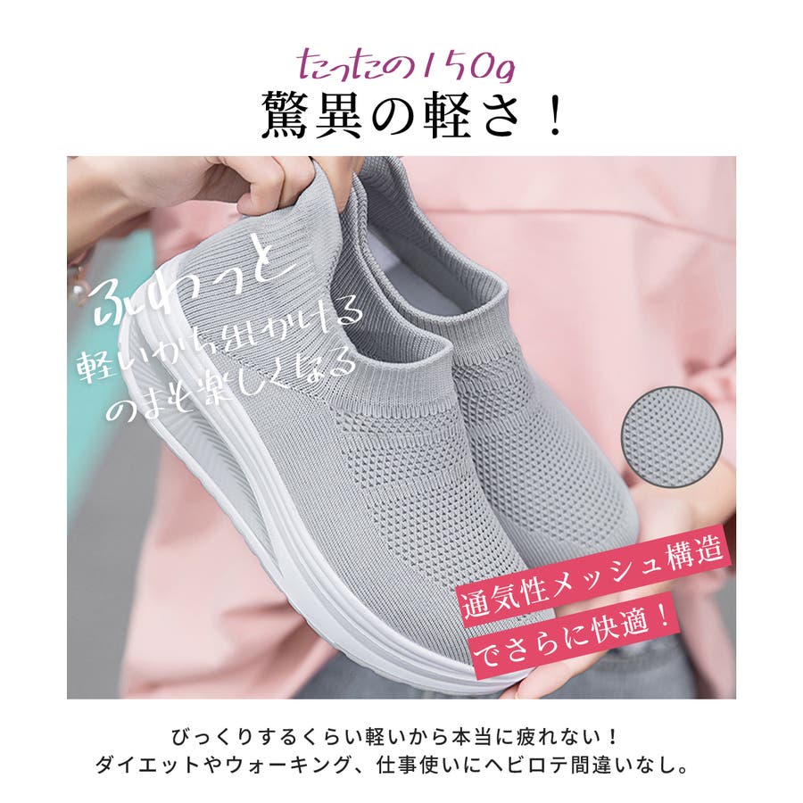 | 素材 | 素材:ニットメッシュ(アッパー) ソール:EVAクッションソール+ラバー底 タイプ:スリッポン(紐なし) ヒール:約5cm厚底設計 重量:超軽量設計 機能: ・通気性メッシュ ・クッション性 ・伸縮フィット構造 ・歩行安定サポート |