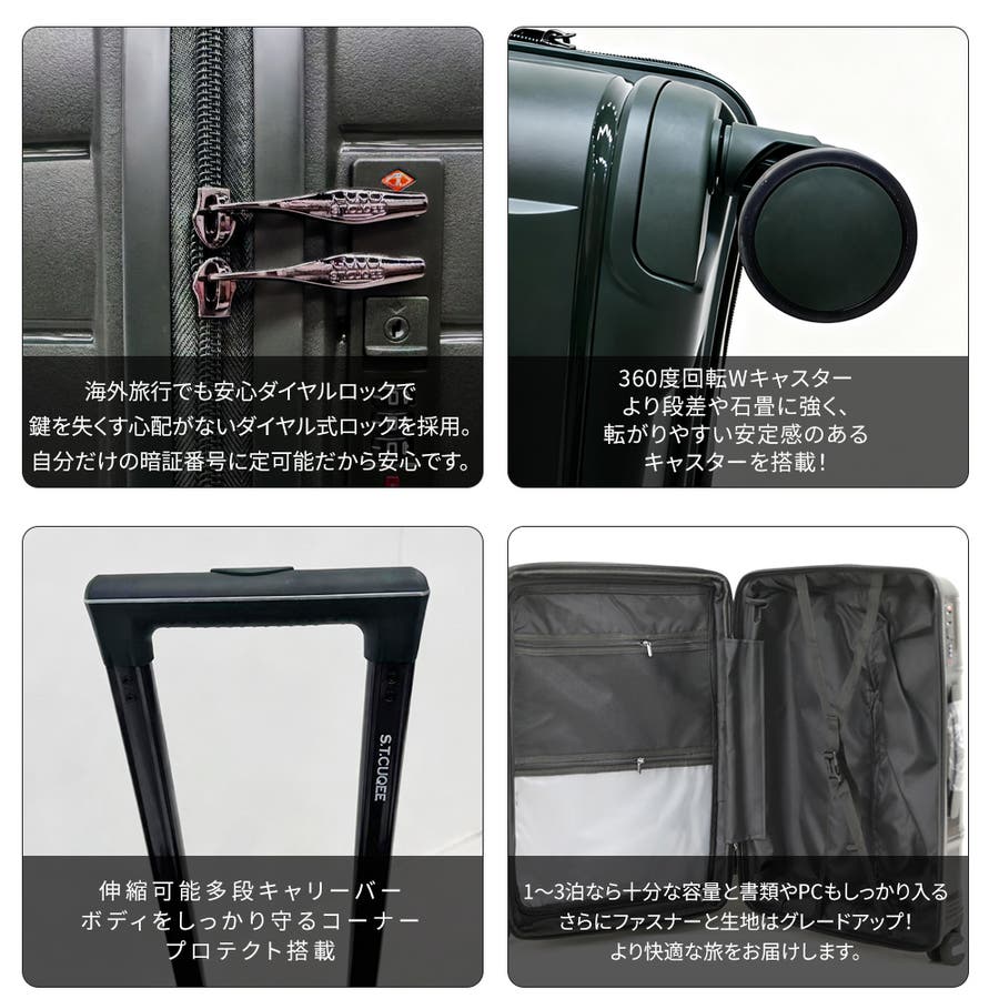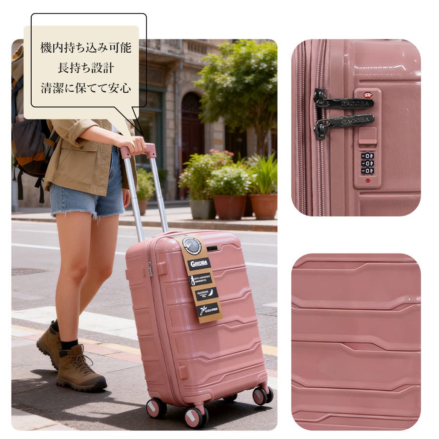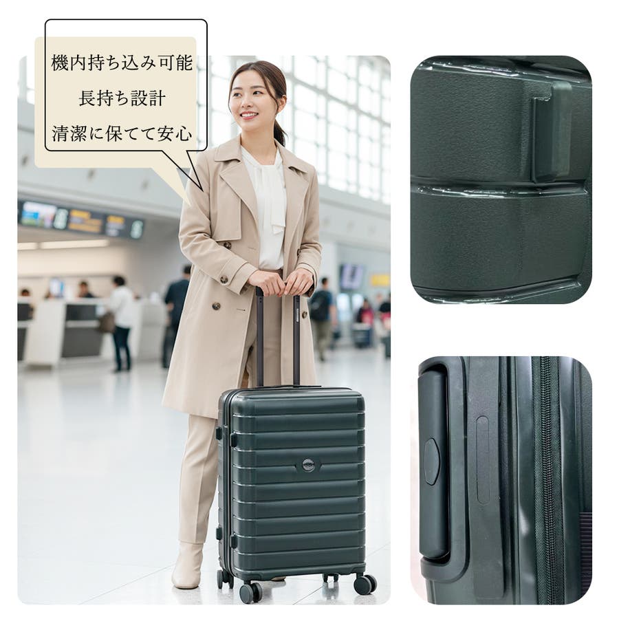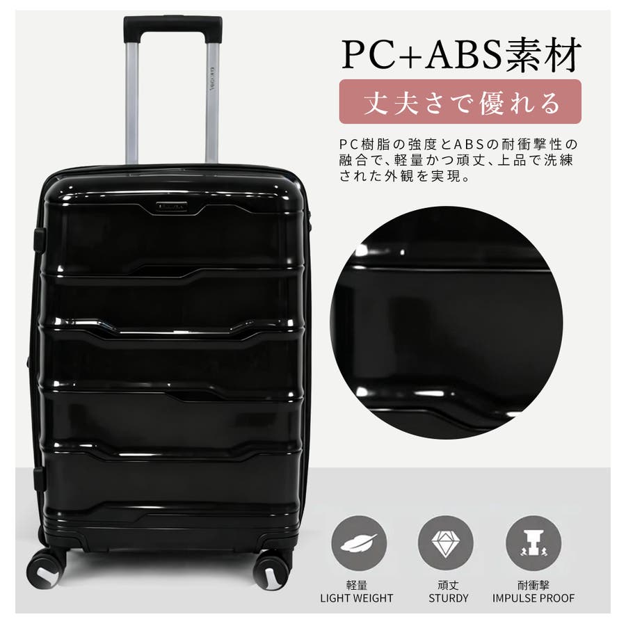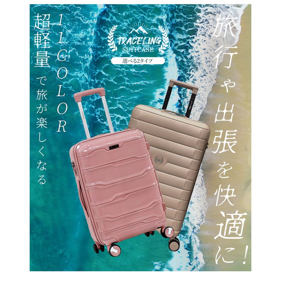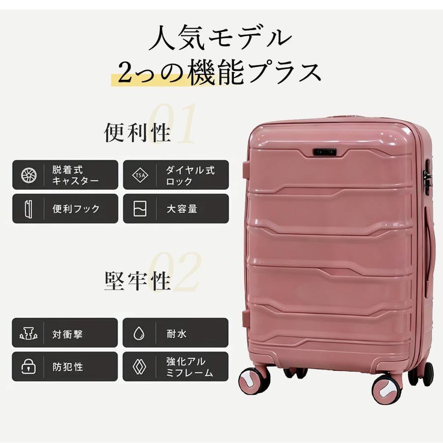 | 素材 | ・軽量設計で持ち運びラクラク ・静音360°ダブルキャスター ・TSAロック搭載 ・大容量収納 |