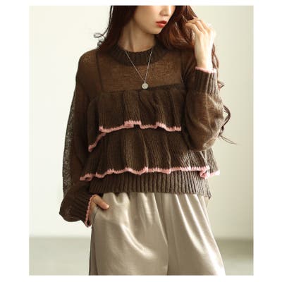 ふわふわとしたモヘアフリルが可愛いニットトップスです。