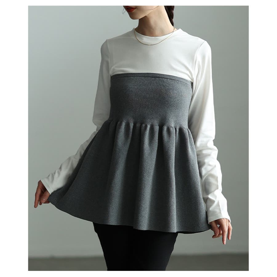 特徴: 異素材 重ね着風 ペプラム フレア