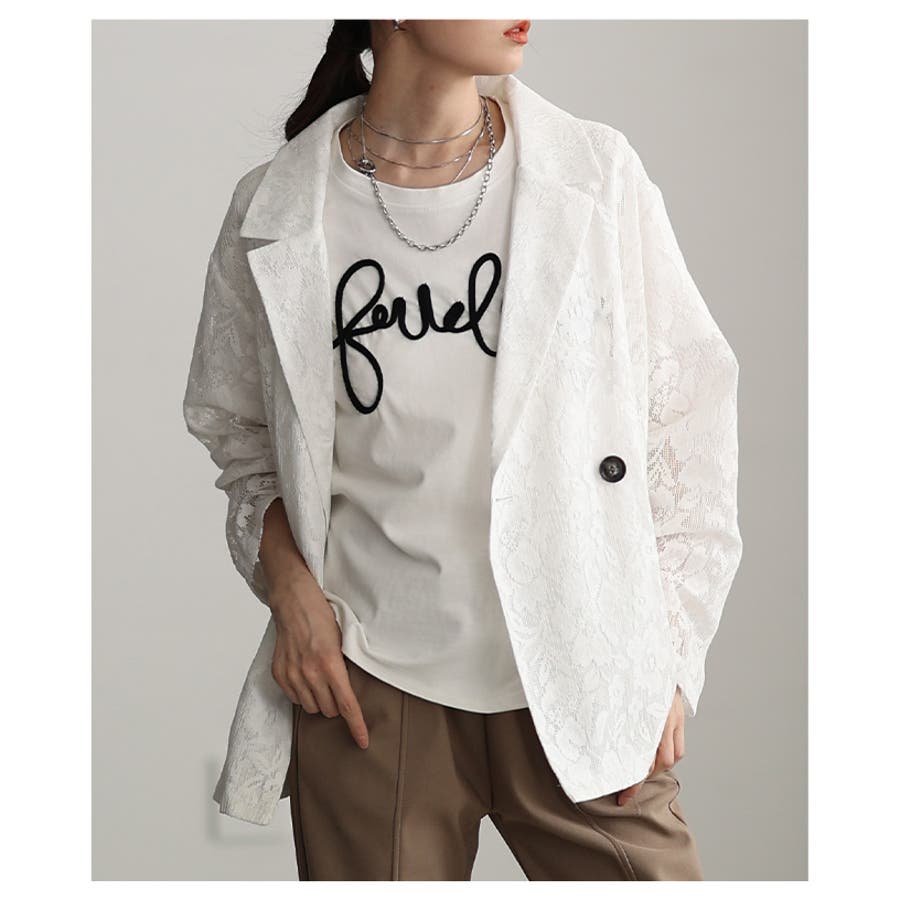 高見え感度抜群な花柄クロシェレーステーラードジャケット レディース ファッション