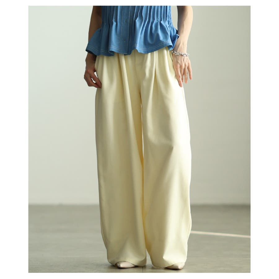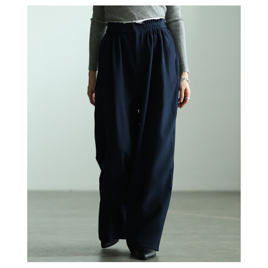 特徴: タック ハイウエスト レイヤード風 ワイド ポケット ジッパーフライ ウエストゴム 裏地