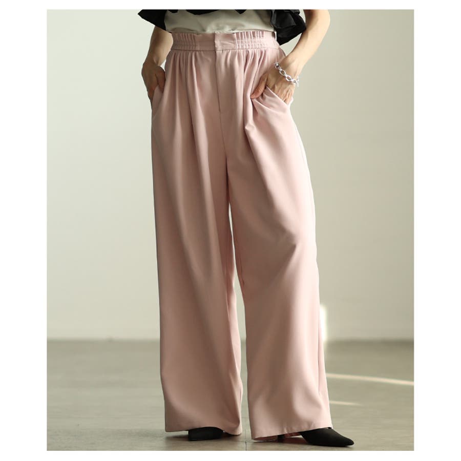 自然な奥行き生まれるメニータックハイウエストワイドパンツ レディース ファッショ…
