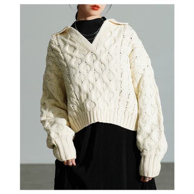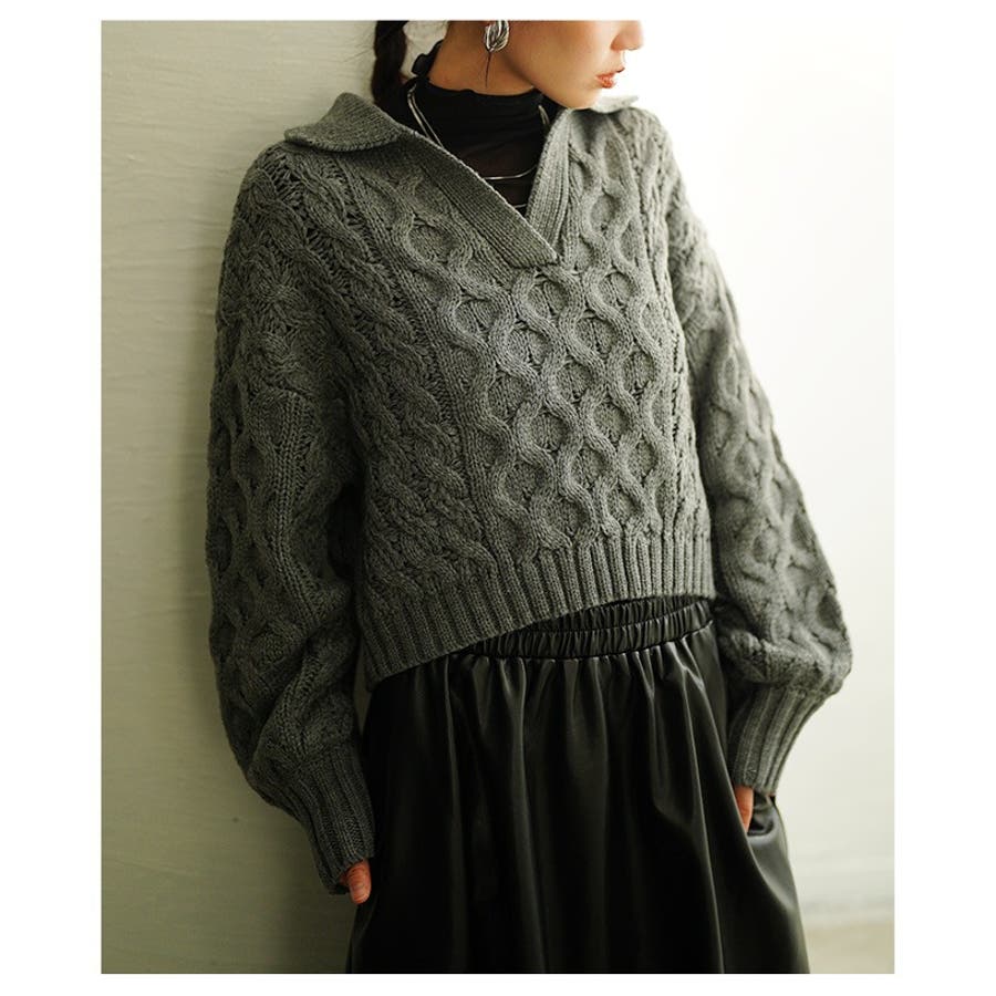季節の着こなしを纏うケーブル編みスキッパーニットセーター レディース ファッション