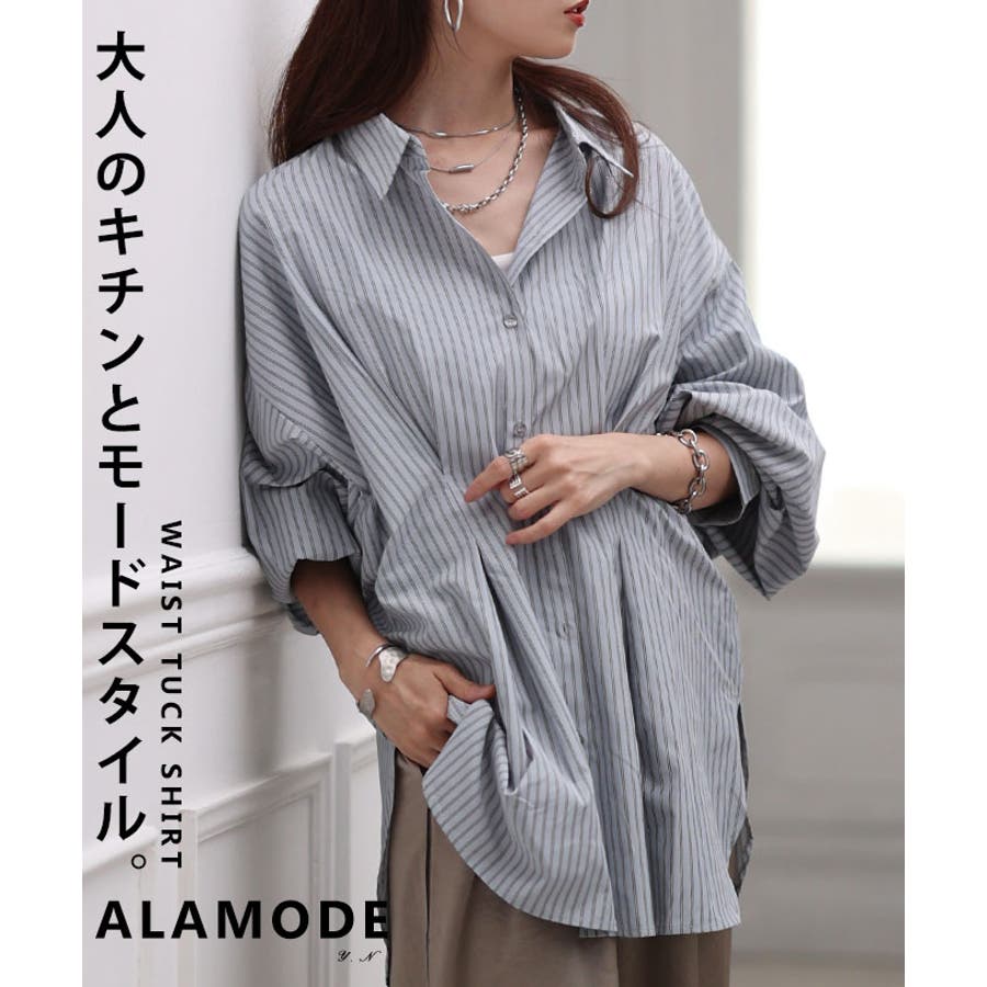 今季のトレンドのシャツにはウエストシェイプを加えてデザインにヒトクセプラス。