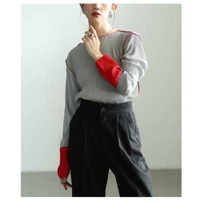 プリーツトップスに配色デザインを加えて今っぽく。