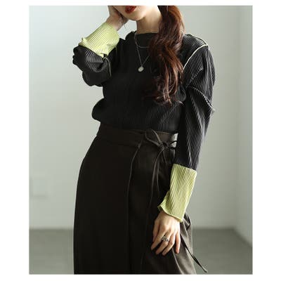 コーデのアクセントになるバイカラースリーブプリーツトップス レディース