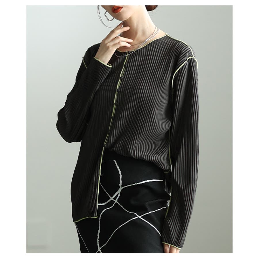 コーデが華やぐステッチパイピングプリーツカーディガン レディース ファッション