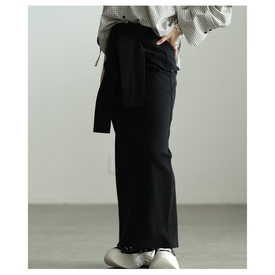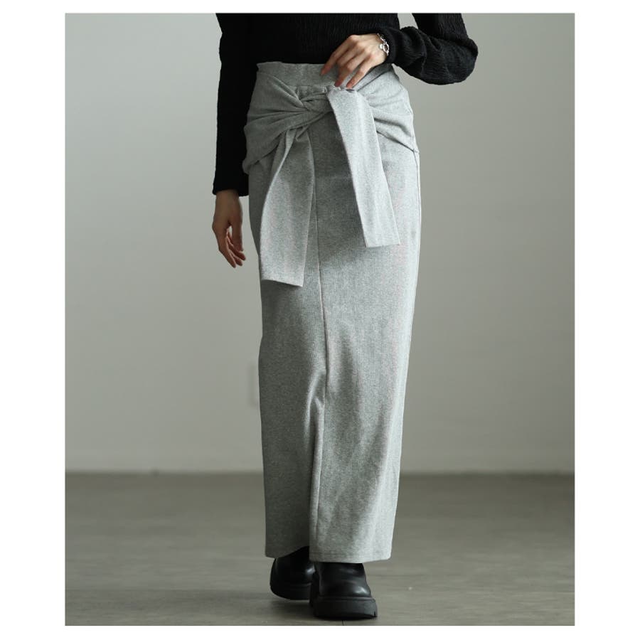 お洒落好き必見!一体スリーブ腰巻風カットリブナロースカート レディース ファッシ…