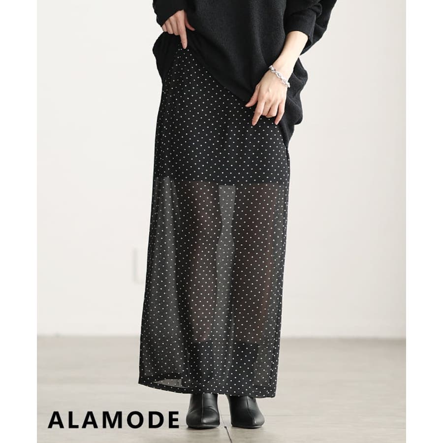 透け感で魅せるシアードットロングスカート レディース スカート