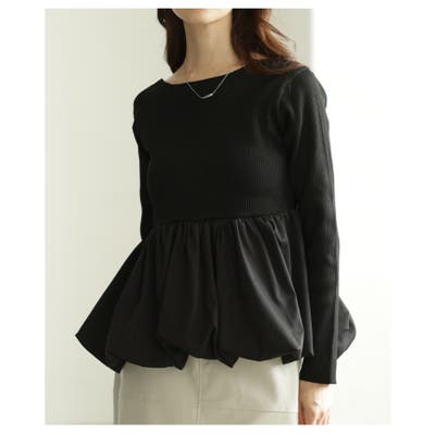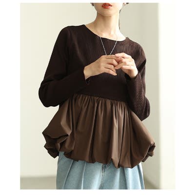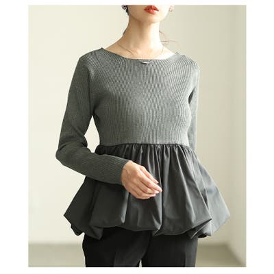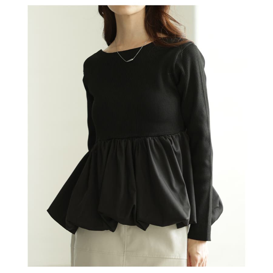 特徴: 異素材 リブニット ペプラム バルーン ギャザー ボートネック