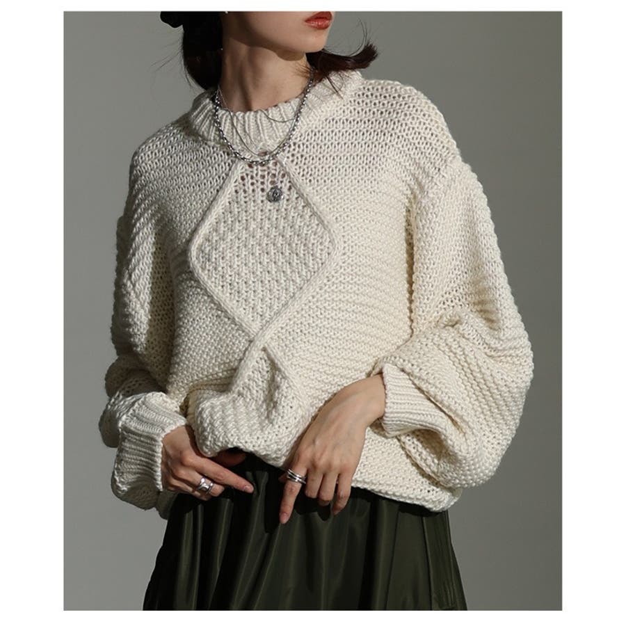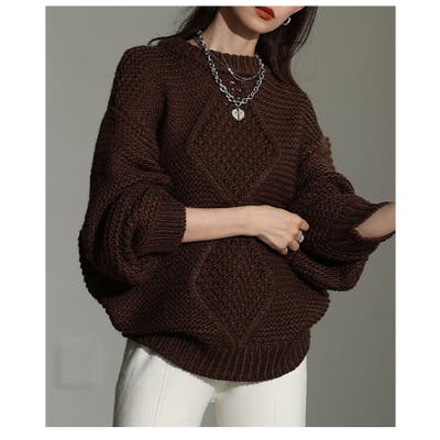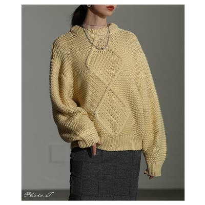 ざっくり編みの表情が魅力なフロントダイヤ柄ローゲージニットトップス レディース