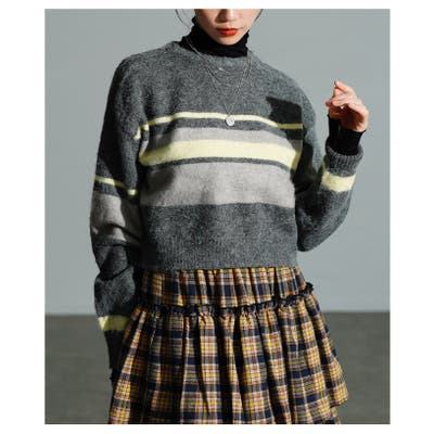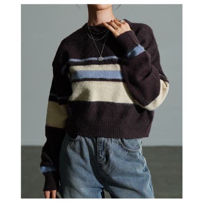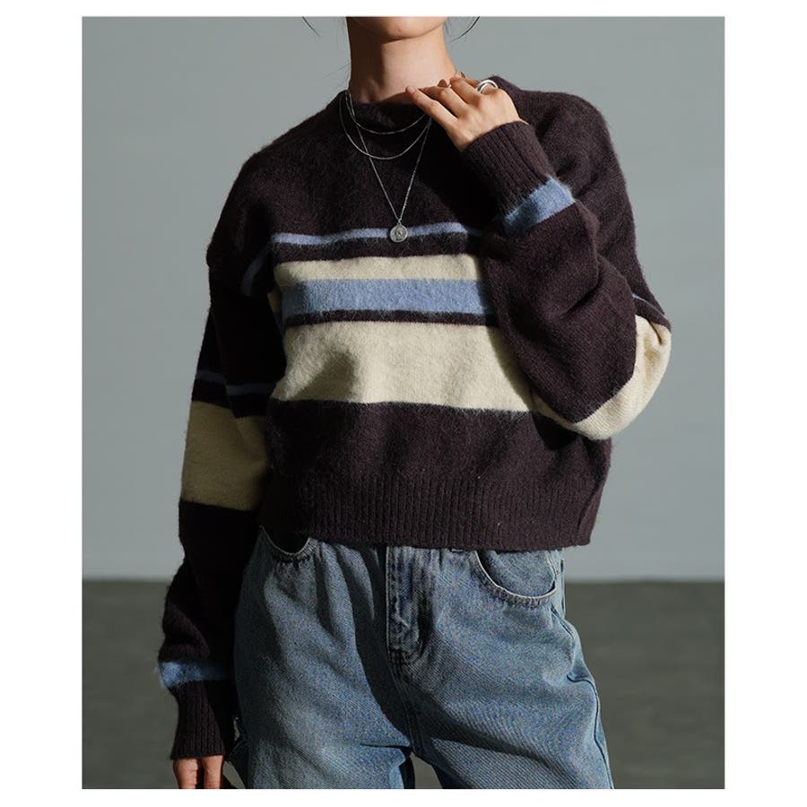 ふわふわ起毛のマルチボーダーニットです。クロップド丈なのでスタイルアップ効果抜群!デニムにワイドパンツ、スカートとどんなタイプのボトムスとも相性抜群です◎