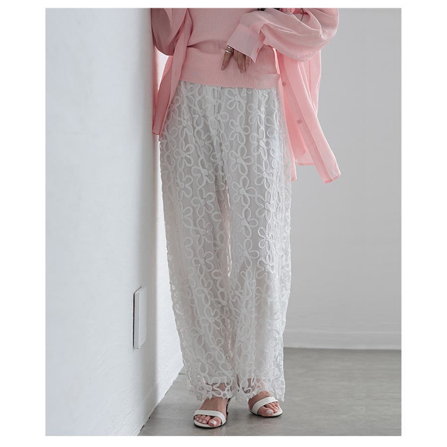 洗練されたナチュラルな美しさを纏うフラワーコード刺繍ワイドパンツ レディース フ…