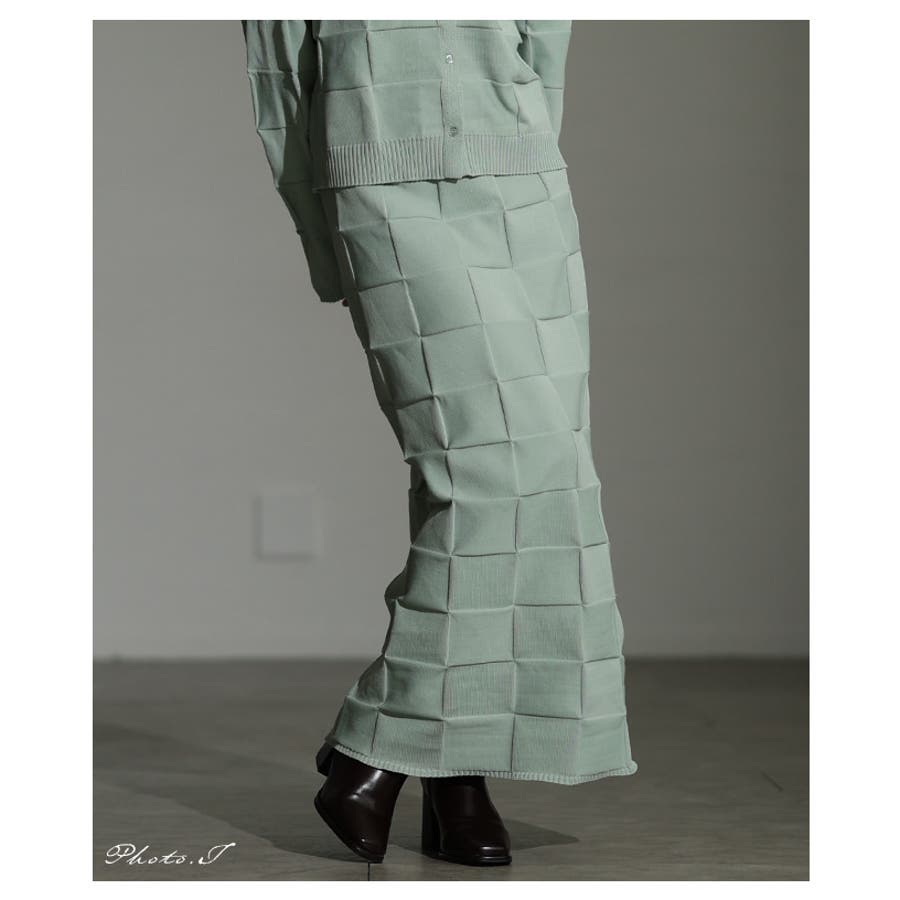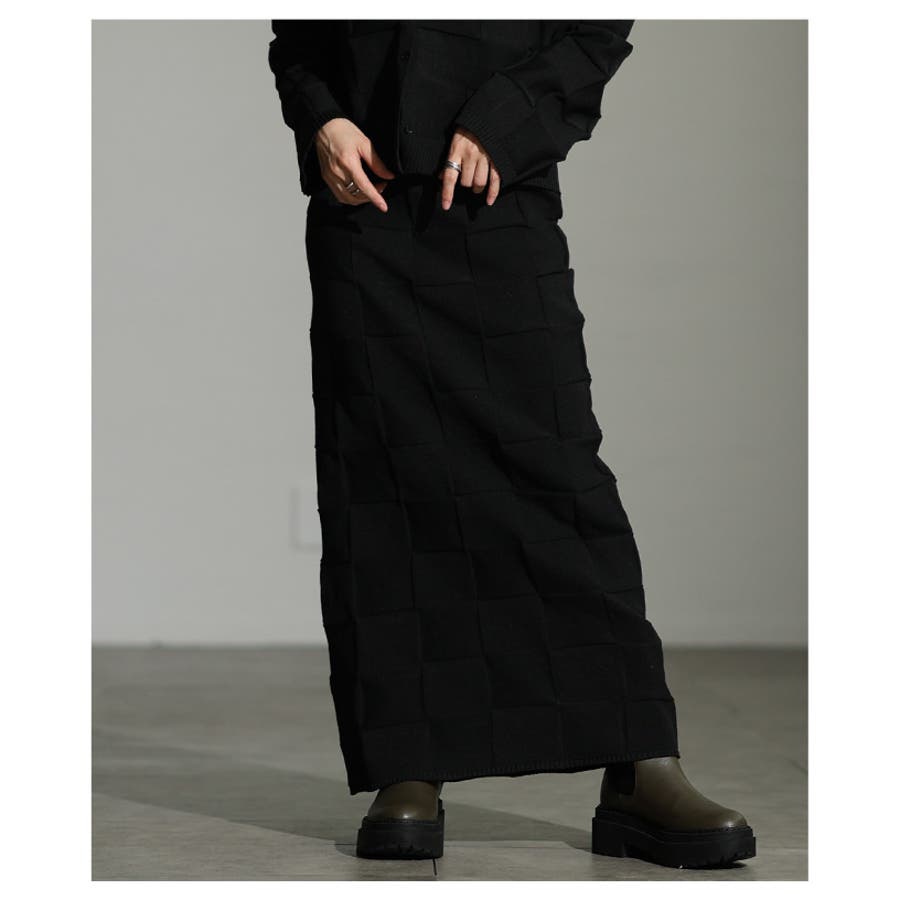 惹き込まれる陰影纏うエンボスチェックニットスカート レディース ファッション