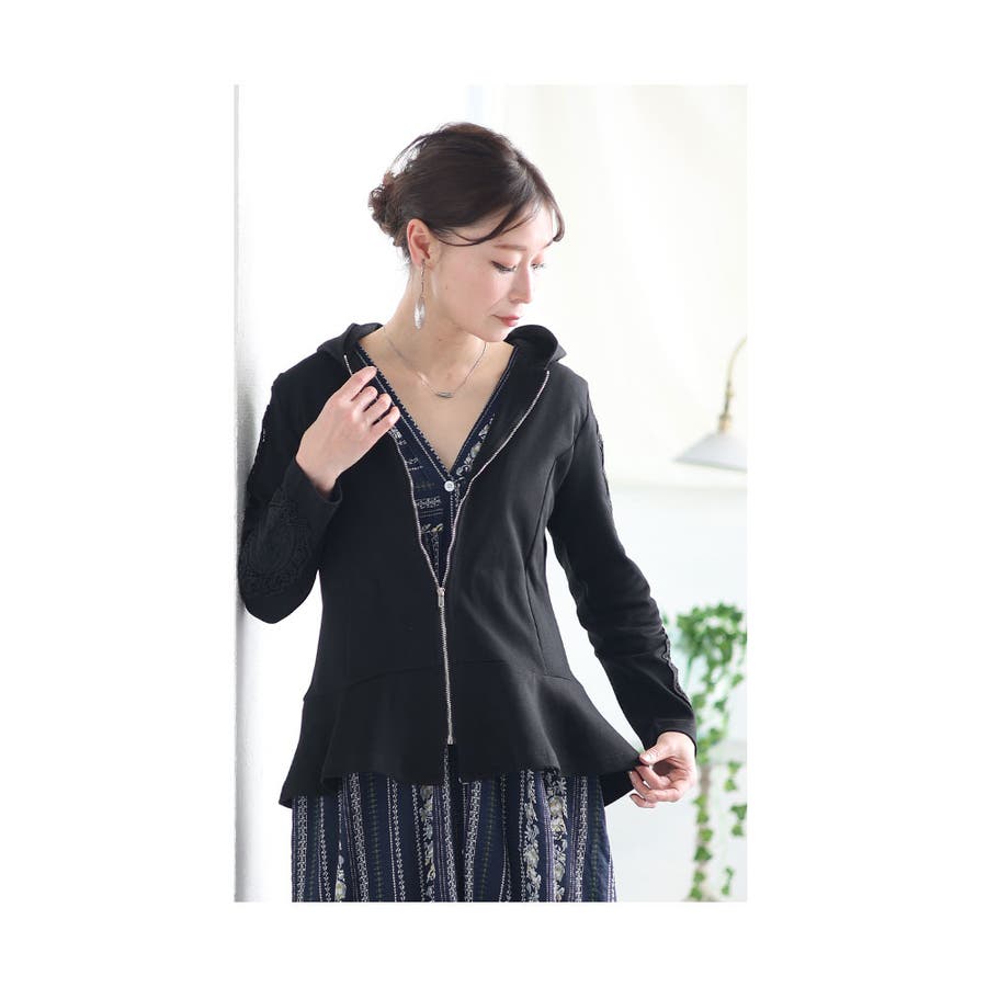 大人の脱カジュアルが楽しめる上品な袖レースパーカー レディース ファッション