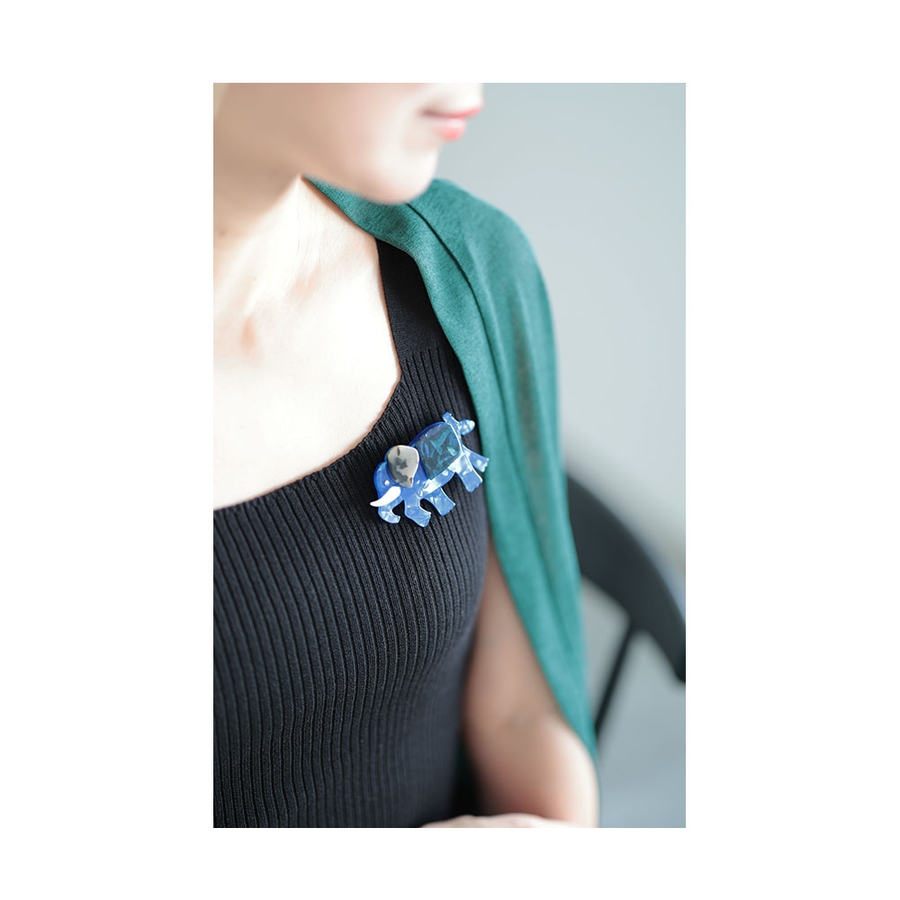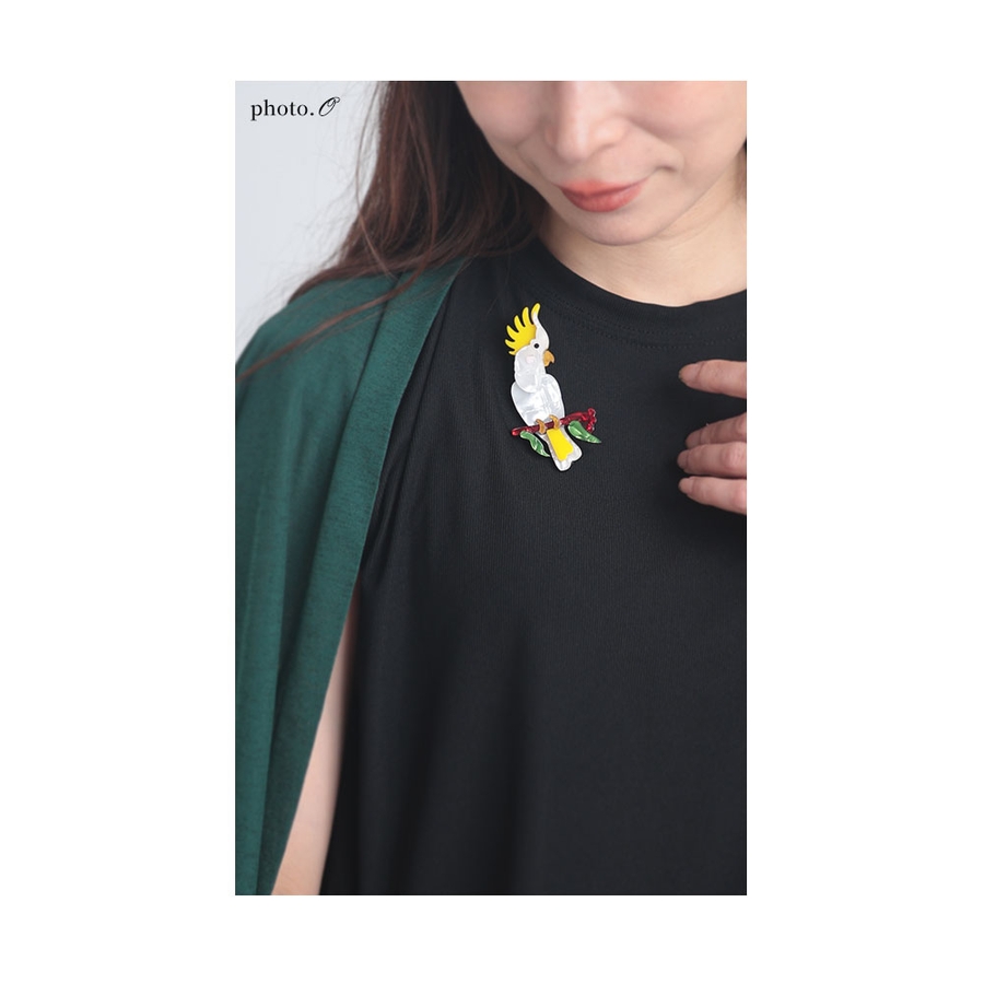 アクリル樹脂を重ねて立体的に仕上げた動物のブローチです。それぞれに表情のある素材感とデザインで遊び心があり、Tシャツなどウエアの他、バッグや帽子のアクセントなど色々楽しめそうです。