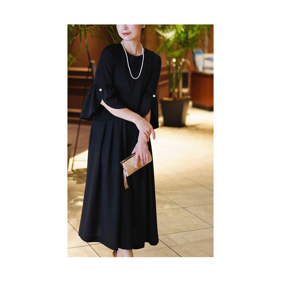 艶めくパールが美しいフレアスリーブロングワンピース レディース ファッション