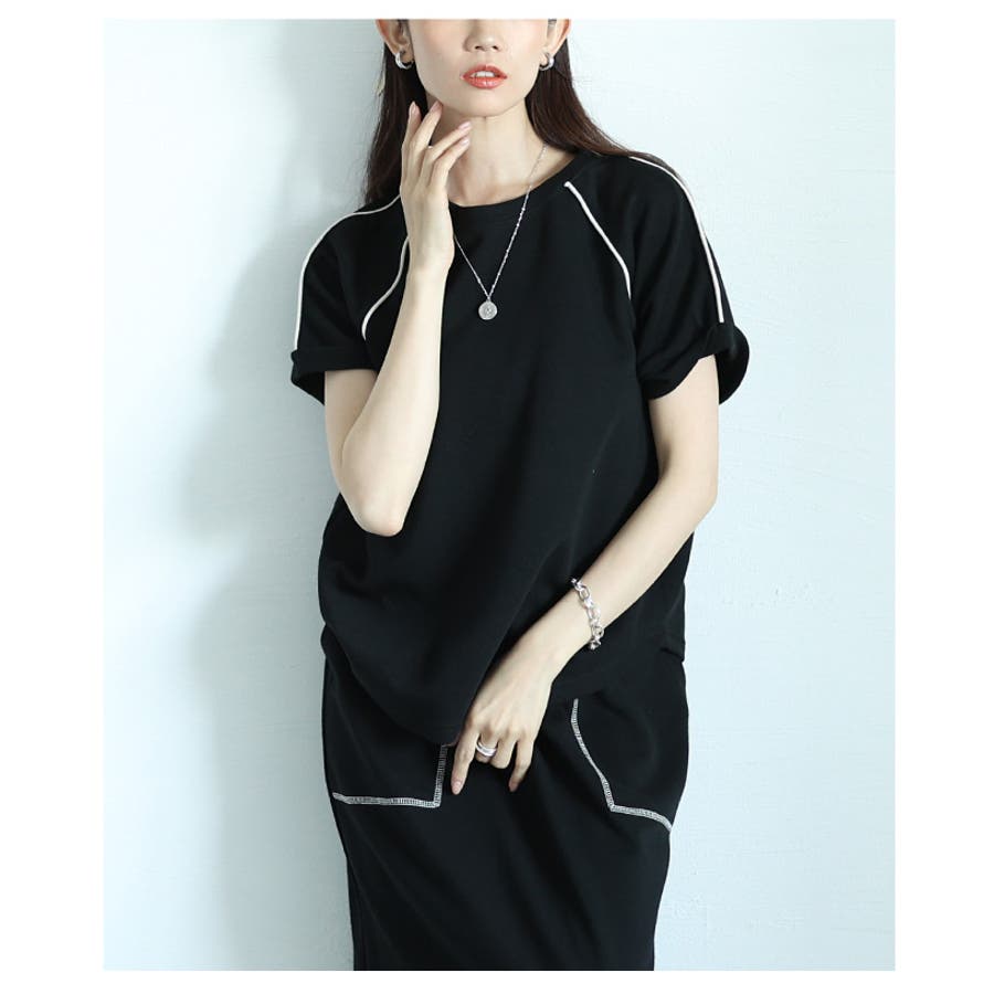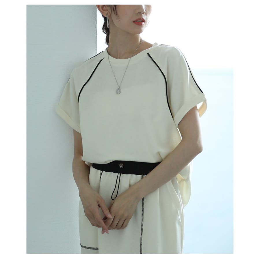 ニュアンスを与えるモードなパイピングラインカットソー レディース ファッション