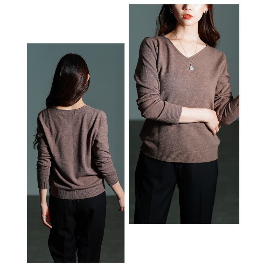 ベーシックで着回し力抜群なVネックニットトップス レディース ファッション