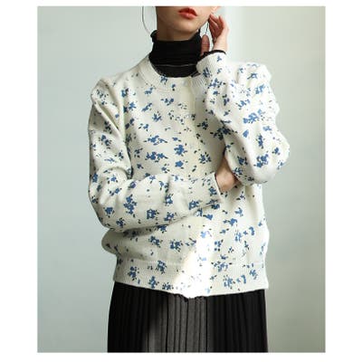 コンパクトなシルエットのカーディガンに小花プリントで可愛らしさをプラス。