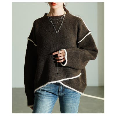 ラフに垢抜けるパイピングイレヘムニットプルオーバー レディース ファッション