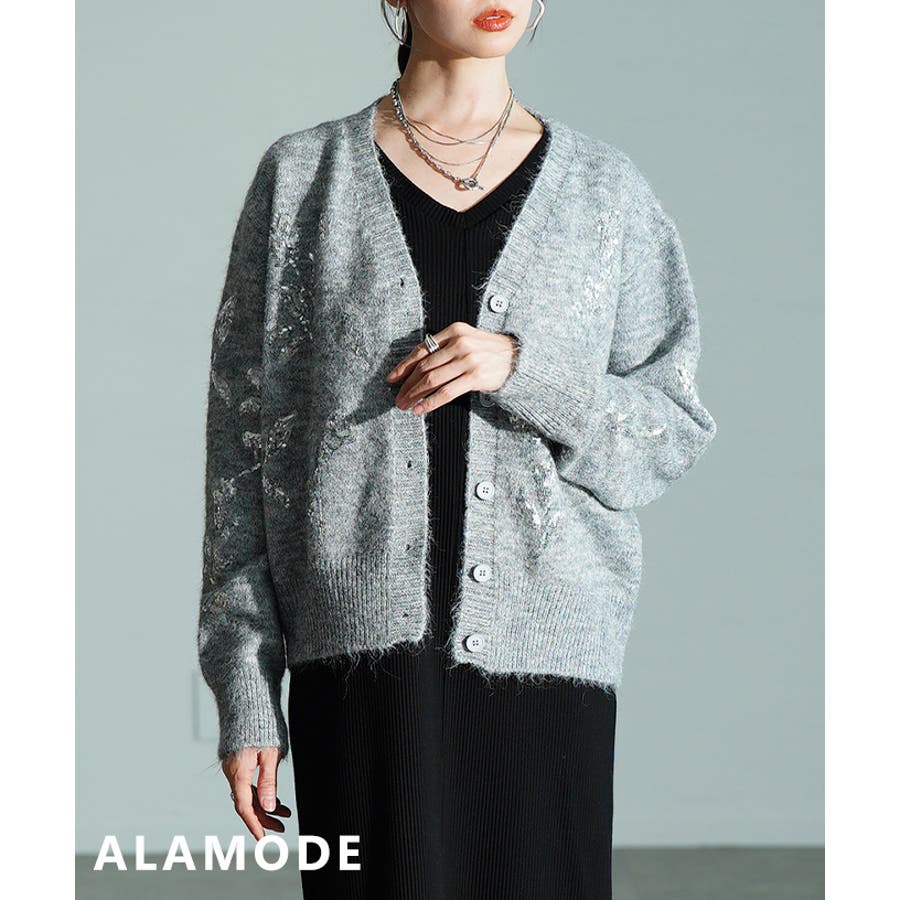 上品に映えるスパンコールフラワーカーディガン レディース トップス