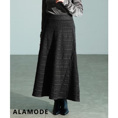 編み込まれたラメが動くたびに上品に輝くニットフレアスカートです。
