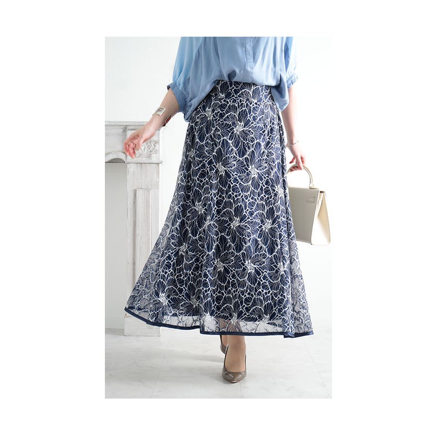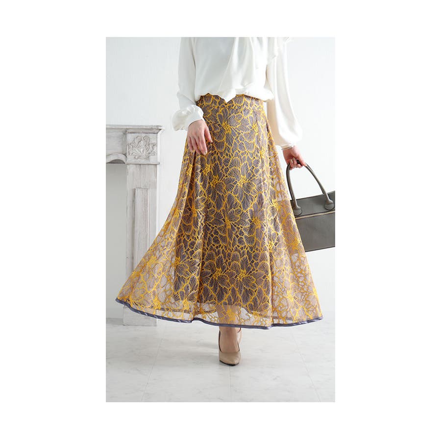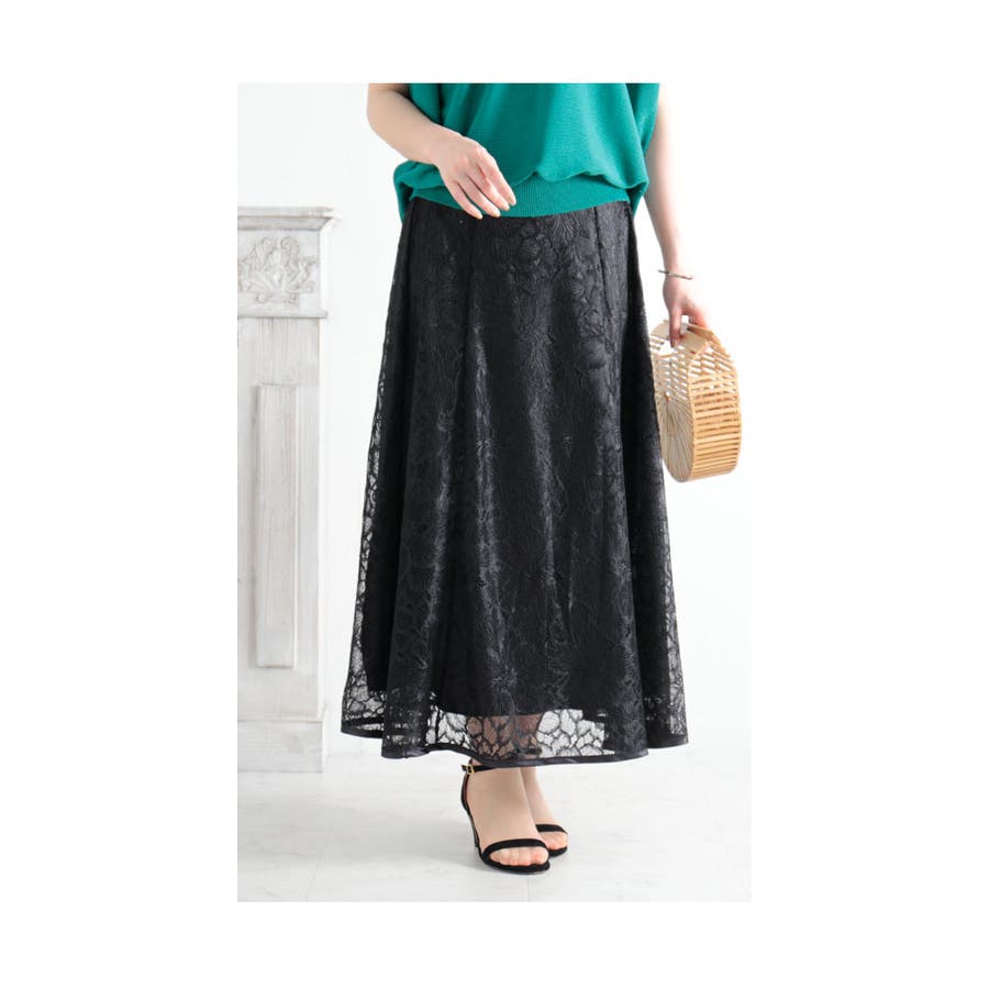 長さを変えて楽しめる花柄レースフレアスカート レディース ファッション