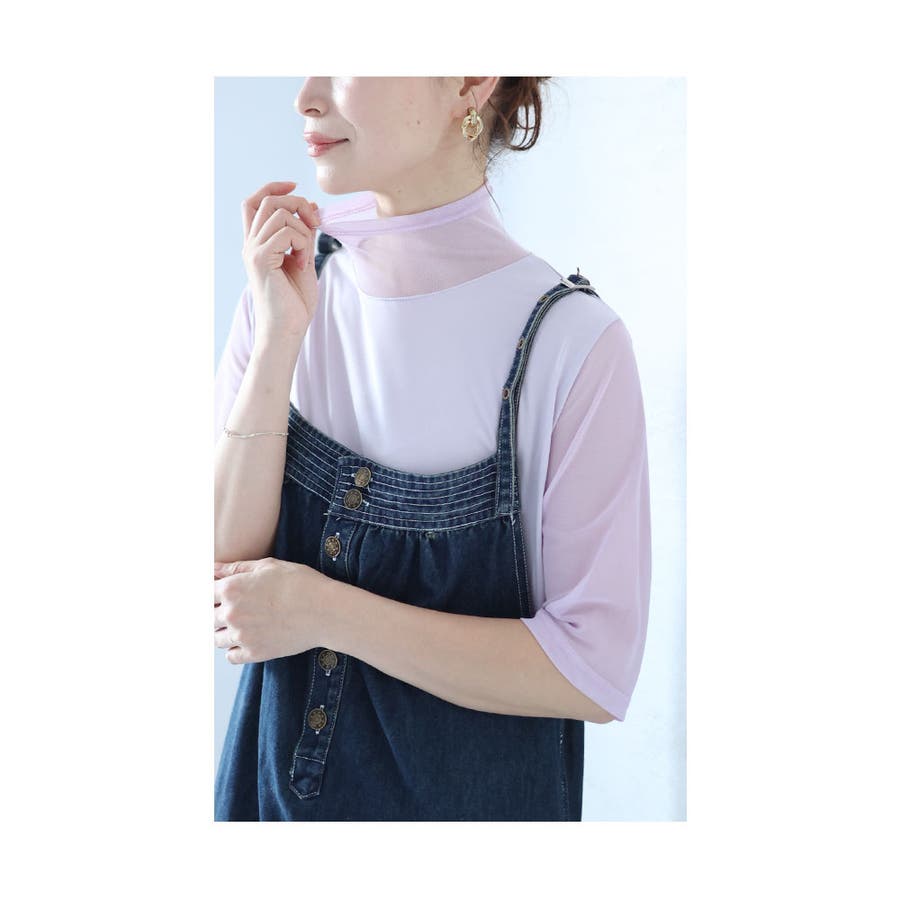 着丈はおしりがほぼ隠れるくらいです。首元はスタンドネックで首の真ん中くらいです。袖は肘下くらいです。脇ぐりも身幅も余裕があり楽に着用出来ました。首元と袖はチュール生地で透け感があります。身頃 は柔らかく伸縮性のある生地で肌ざわりも良く着心地良かったです。チュール部分も伸縮性がありチクチク感もなく肌ざわり良かったです。1枚でもレイヤードコーデでも着用出来る着回し力の高い1枚です。