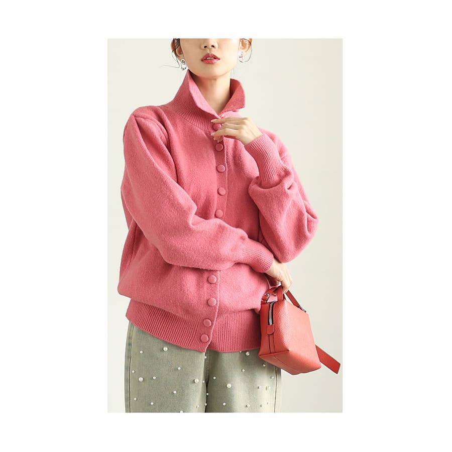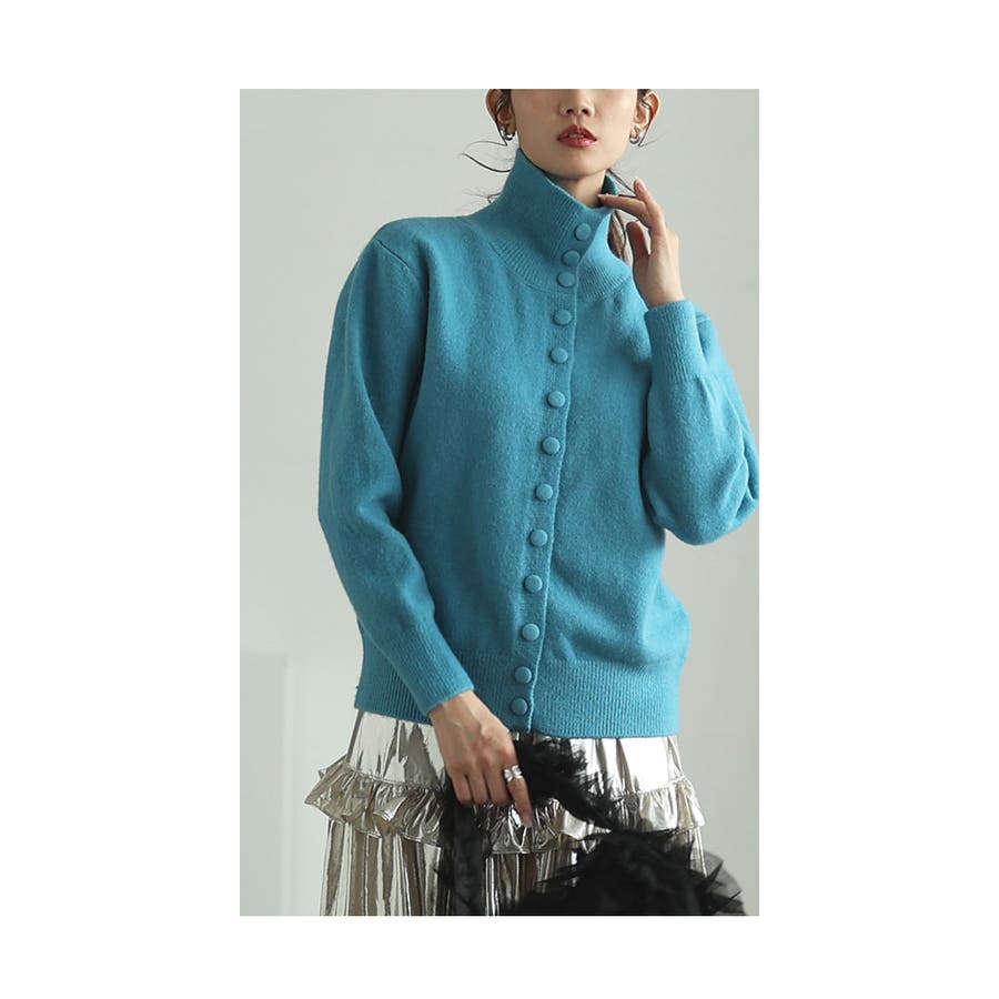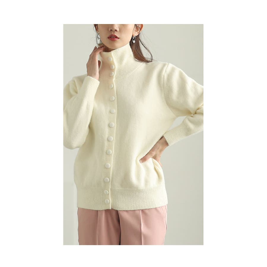 ころんと可愛いくるみボタンハイネックニットトップス。