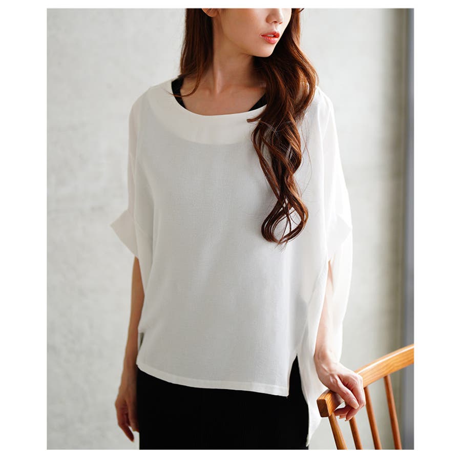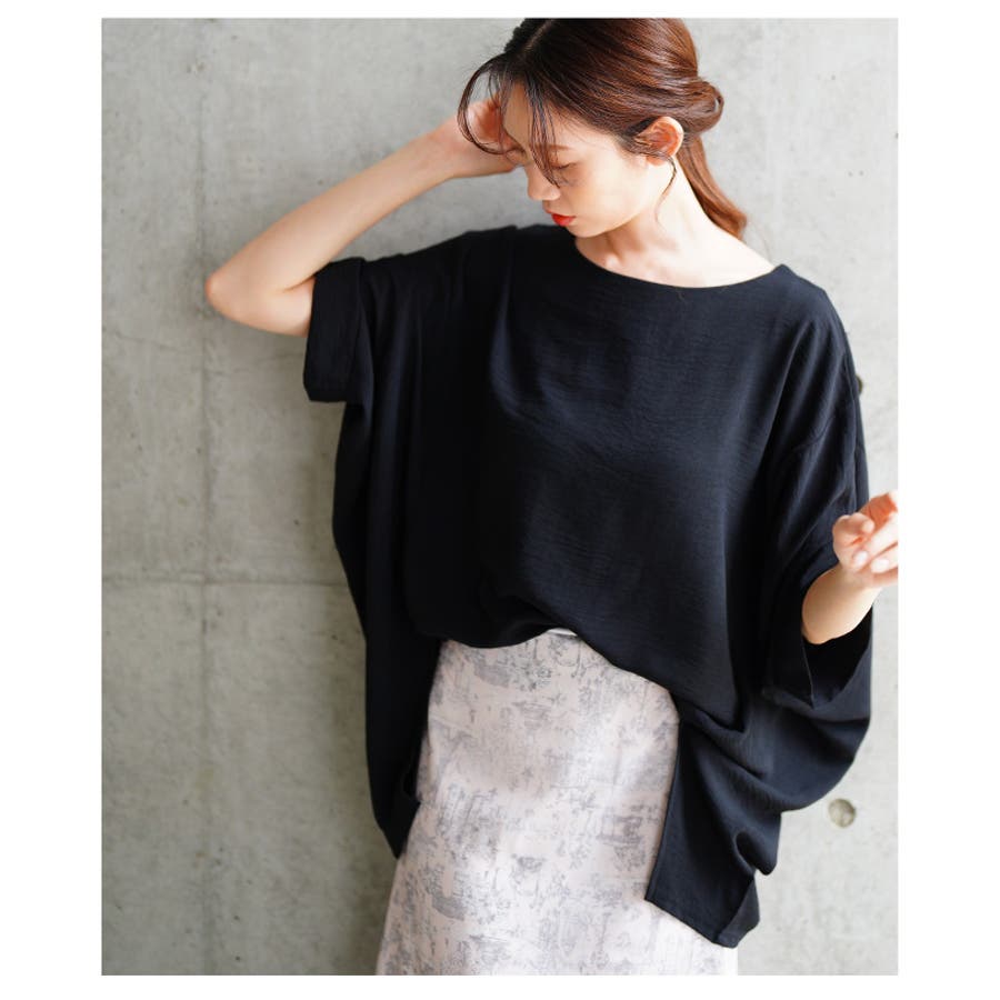 着痩せして見える華奢見せドルマンスリーブカットソー。