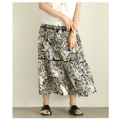エキゾチックに華やぐフラワープリントティアードスカート レディース ファッション