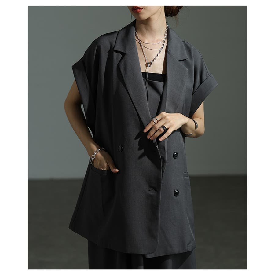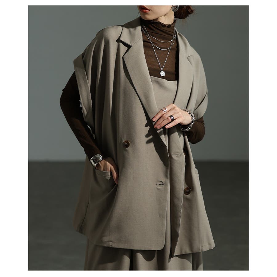 特徴: ダブル ノッチドラペルカラー ドロップショルダー 袖口折り返し ポケット