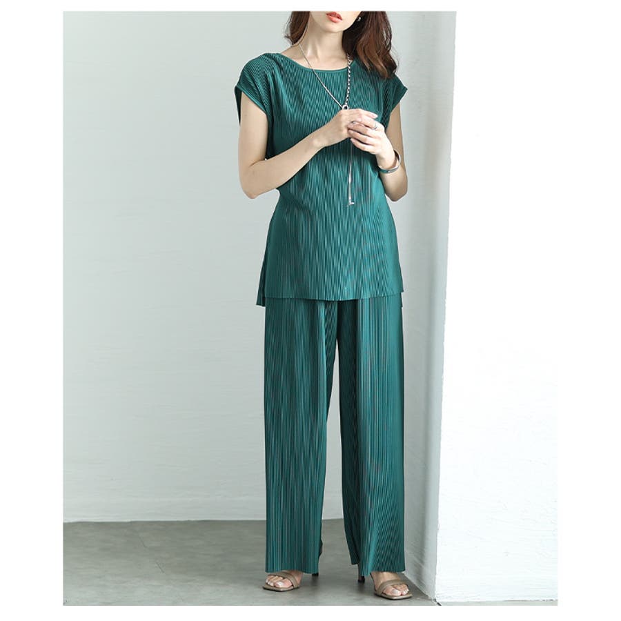 着こなしの幅広がるリブカットソー&リブパンツセットアップ レディース ファッショ…