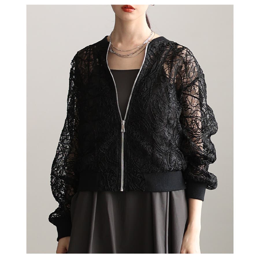 MIXスタイル楽しむ総レース×コード刺繍ジップアップブルゾン レディース ファッ…