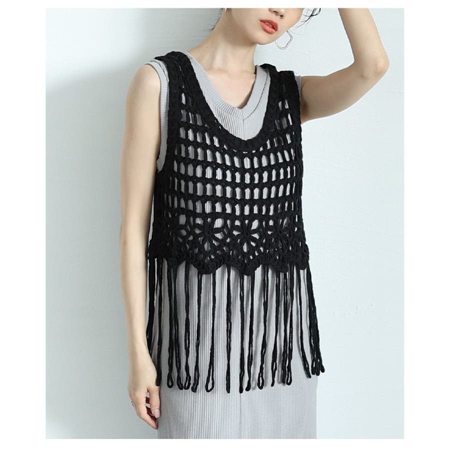 特徴: かぎ編み 花柄 メッシュ フリンジ シェブロン ニット