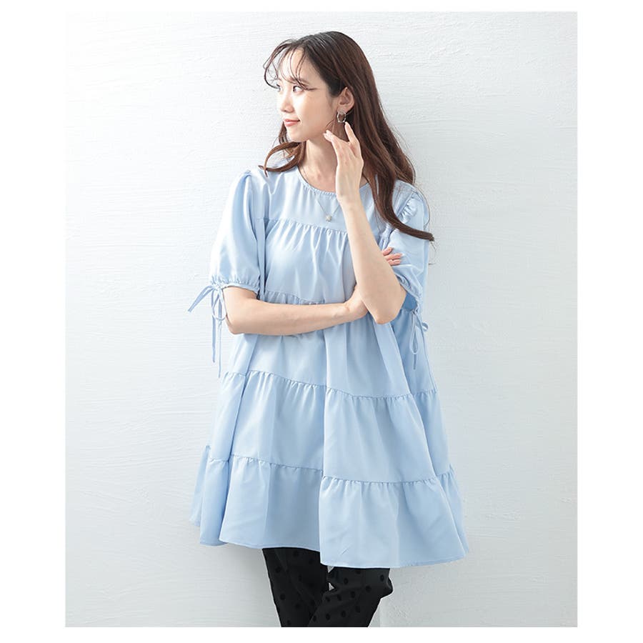 甘く揺れるティアードフレアチュニック レディース ファッション