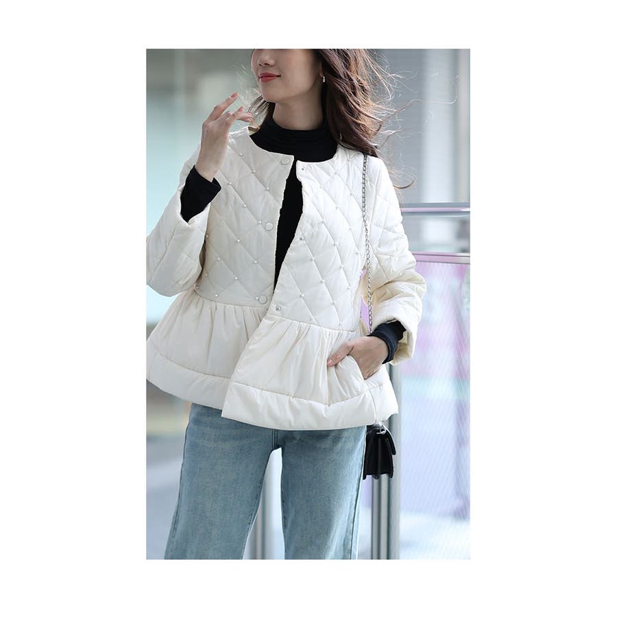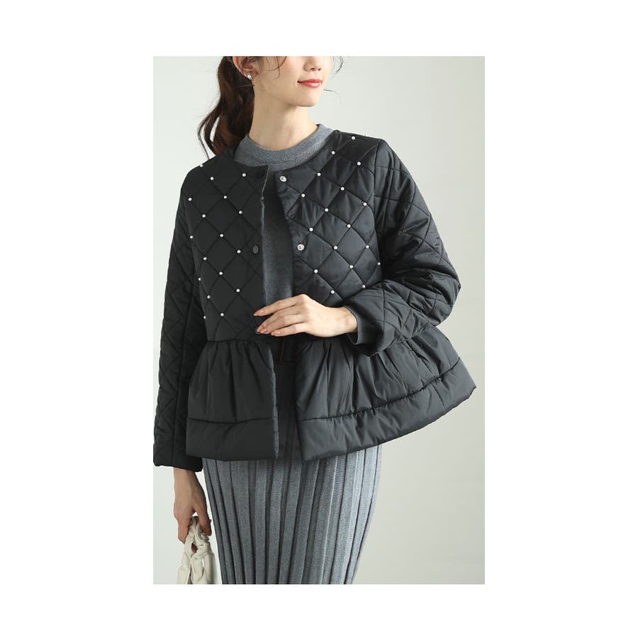 「パール×ペプラム」中綿キルティングジャケット レディース ファッション