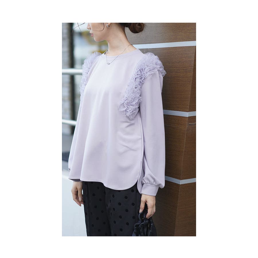 ふわふわフリルチュールのプルオーバートップス レディース ファッション