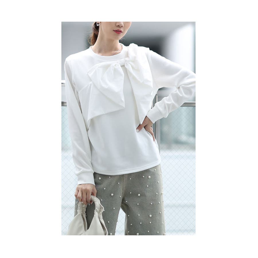 乙女心を擽るビックリボンモチーフ付きカットソー レディース ファッション