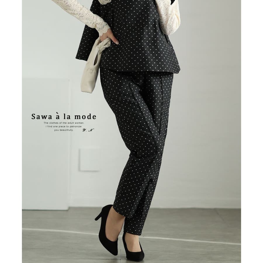 大人が穿きたいドット柄テーパードロングパンツ レディース ファッション