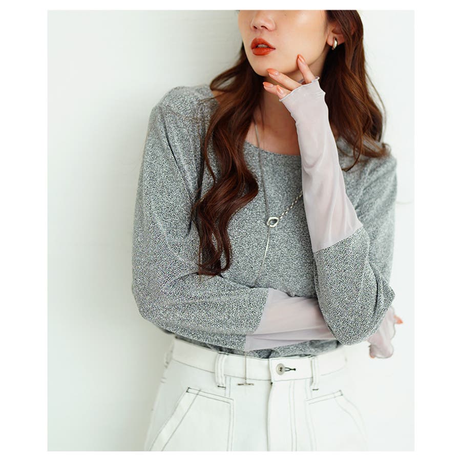 1枚でもレイヤードでも着まわせるフリルシアー袖ラメカットソー レディース ファッ…