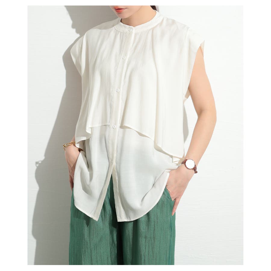 ヒトクセで華やぐティアード風ノースリーブブラウス レディース ファッション